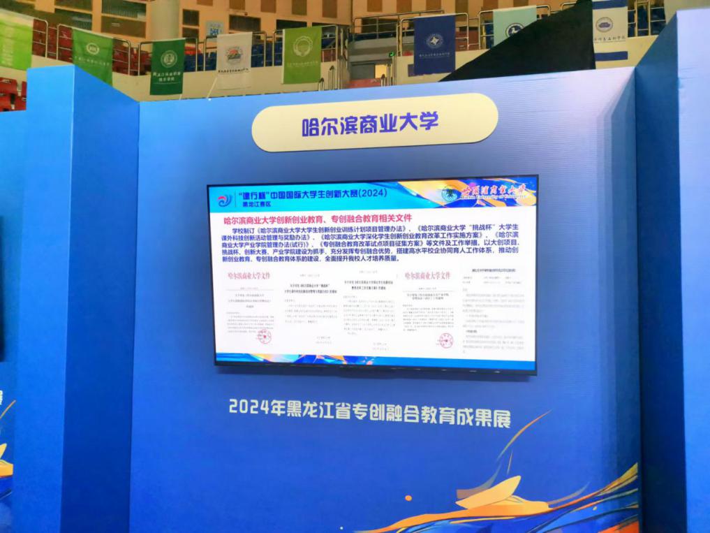 在2024年黑龙江省专创融合教育成果展中,我校作为优秀创新创业教育代表高校,展示了我校创新创业教育办学特色模式及成果,赢得省教育厅领导及师生团队的关注与好评。