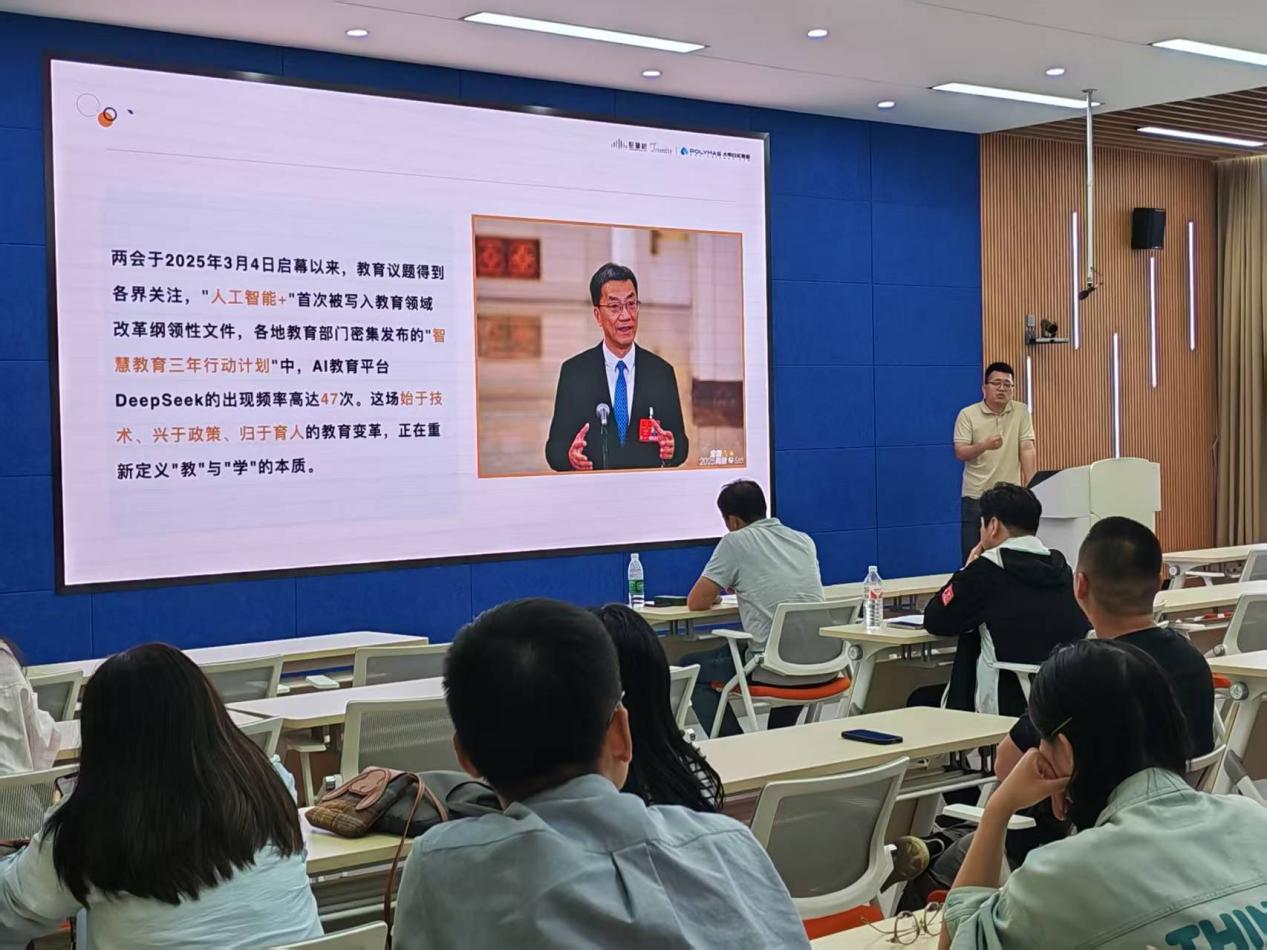 随着科技的迅猛发展,人工智能(AI)作为引领新一轮科技革命和产业变革的战略性技术,正深度渗透到教育教学领域,重塑教育生态。AI 赋能教育教学已成为不可阻挡的时代趋势。5月28日下午,由教务处主办的“人工智能赋能教学改革创新培训活动”,于主教学楼4208教室顺利举办。深度探索人工智能技术在教育领域的创新应用,为教学模式变革注入新动力。