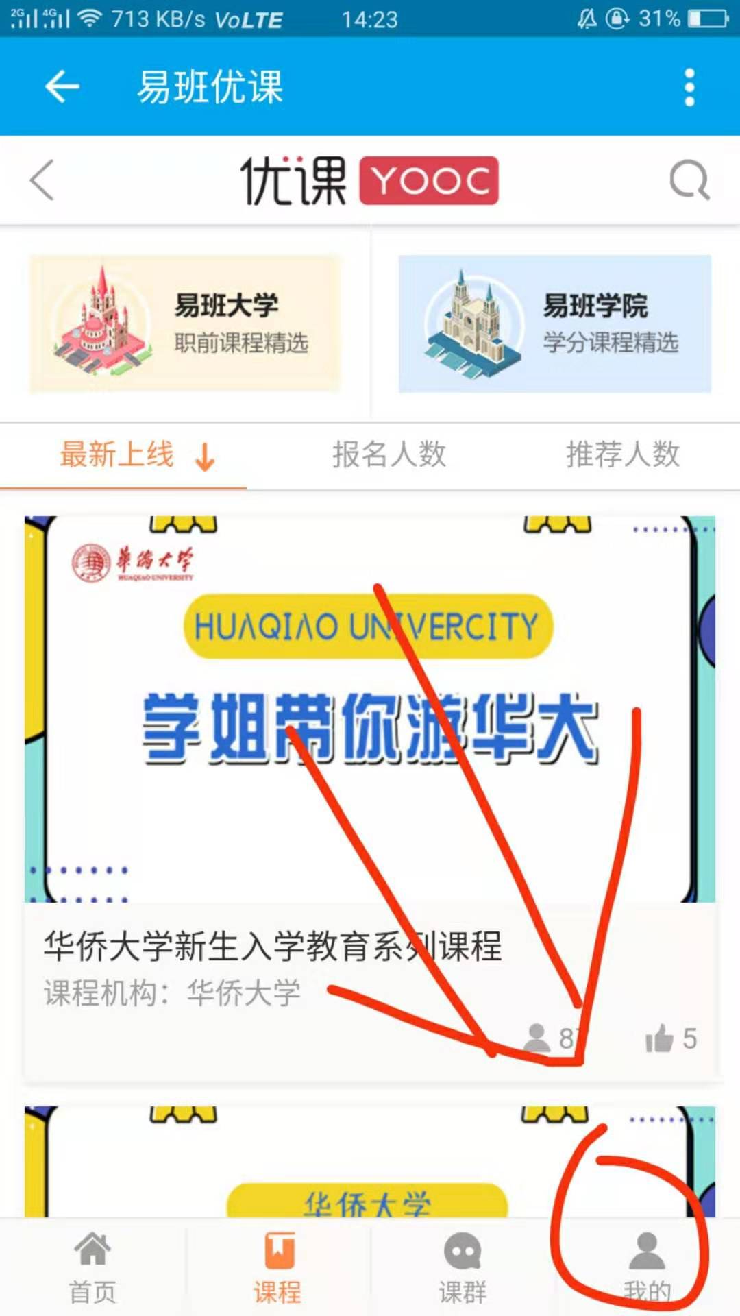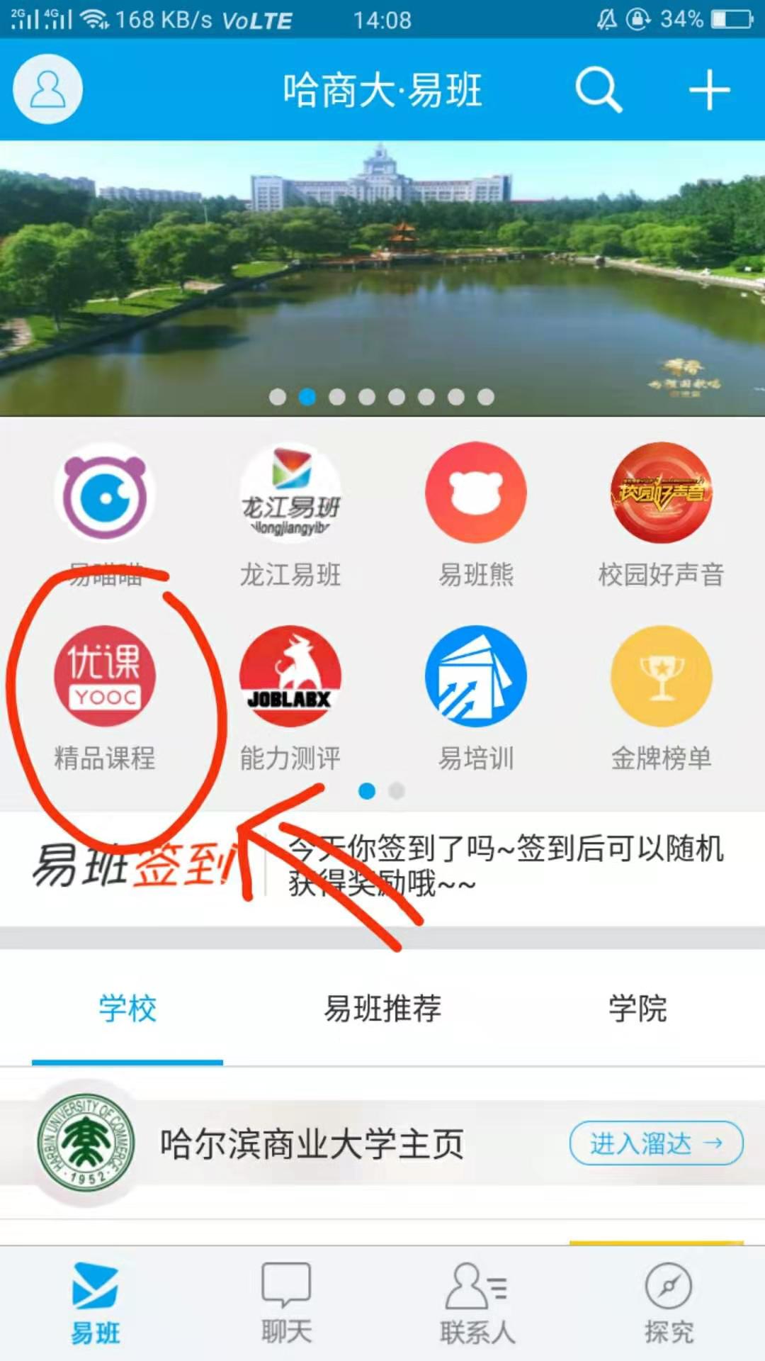 步骤六:登陆易班APP首页,点击“精品课程”,进入“易班优课”页面。