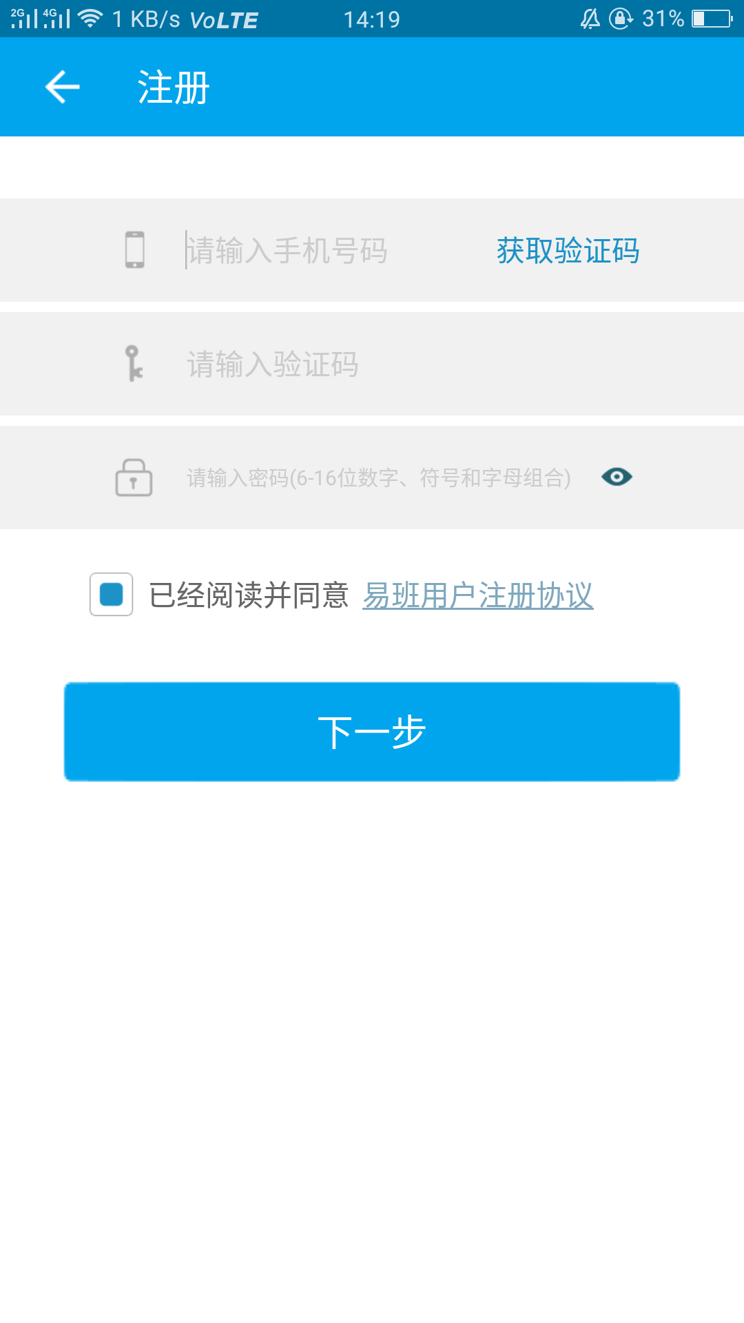 步骤三:输入手机号并获取验证码、密码等信息进行注册。