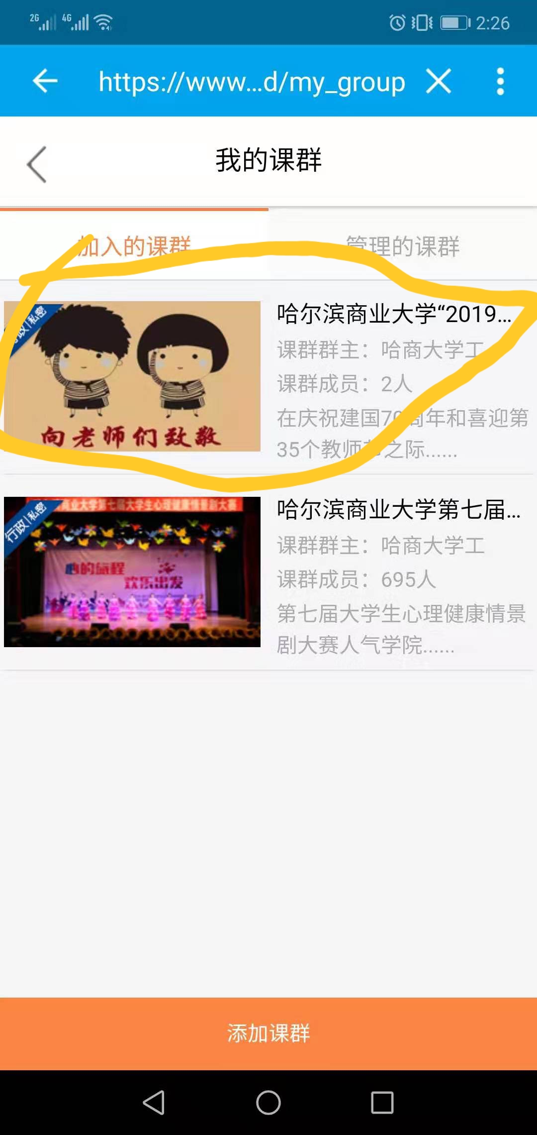 步骤十一:点击进入“哈尔滨商业大学2019学生最喜爱的老师评选”课群,查阅评选说明和评选教师事迹、最终进行评选投票。