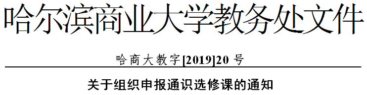 2.请各学院将本单位教师填写的申请表核实后进行汇总,填写《哈尔滨商业大学通识选修课新开课申报汇总表》(见附件1),并于2019年9月20日前报教务处教务科。