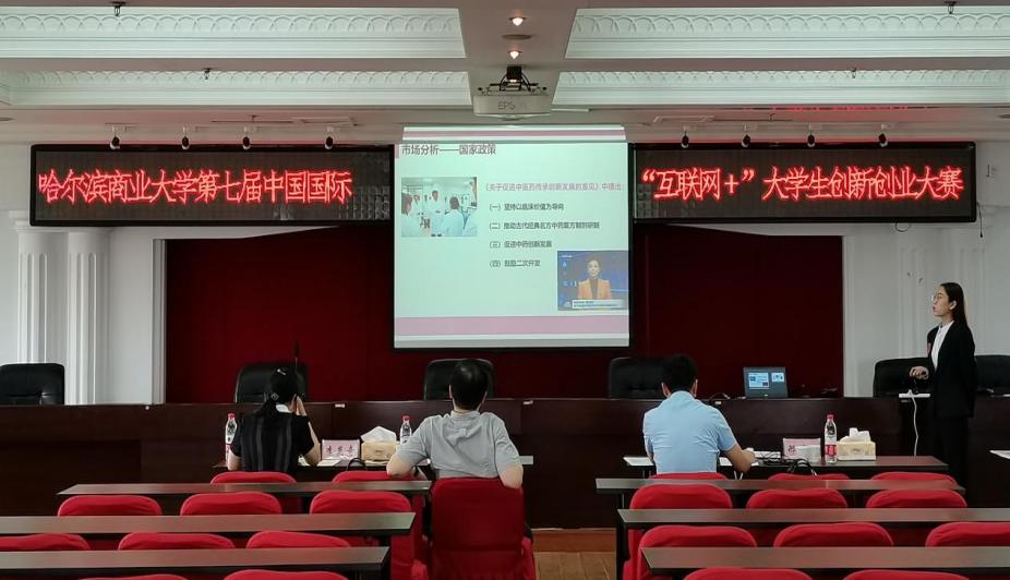 哈尔滨商业大学第七届中国国际“互联网+”大学生创新创业大赛于2021年6月28日顺利举行。学校聘请的评审专家组由教育部全国万名优秀创新创业导师组成,包括哈尔滨股权投资协会副会长兼秘书长、东北石油大学宋要武教授,教育部创新创业教育指导委员会委员,黑龙江省创业教育学会会长,刘文勇教授;教育部经济与贸易类教学指导委员会委员、哈尔滨工业大学姜明辉教授;佳木斯大学创新创业学院邢传波院长;黑龙江省创业教育学会副会长、哈尔滨启创未来科技发展有限公司李英奇总经理;黑龙江省创新创业促进会执行会长秦光齐。