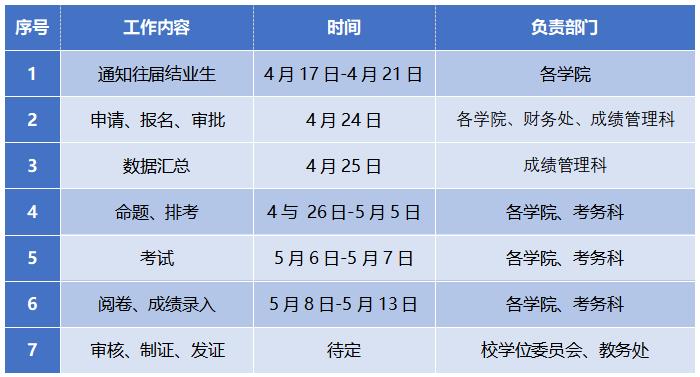 5.报名者可至教务处网站或所属学院教学秘书处查询考试日程。