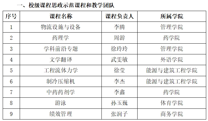 根据黑龙江省教育厅《关于开展第二批课程思政示范项目验收、第四批示范培育项目及第二批优秀教学案例遴选工作的通知》和哈尔滨商业大学《关于开展课程思政建设示范课程和教学团队培育项目遴选推荐工作的通知》,经个人申报和学院推荐,学校组织校外专家评审,遴选出2023年度第二批校级课程思政示范课程和教学团队,名单如下。